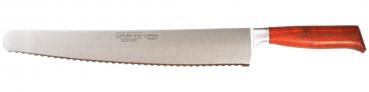 Das italienische Brotmesser der Marke Burgvogel ist aus einem Stück Chrom-Molybdän-Vanadium-Stahl (X 50 CrMoV 15) geschmiedet. Aufgrund 31 cm langen Klinge ist es möglich selbst große Brotlaibe mit wenigen Schnitten zu schneiden. Der markante Wellenschliff sorgt für mühelosen Durchtrennen von harten Brotkrusten. Das Brotmesser ist in den Serien Oliva Line, Natura Line, Comfort Line und Master Line erhältlich.
